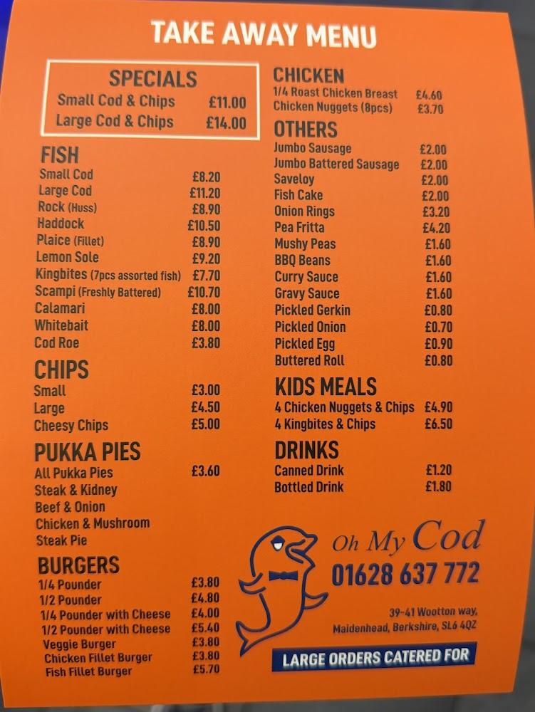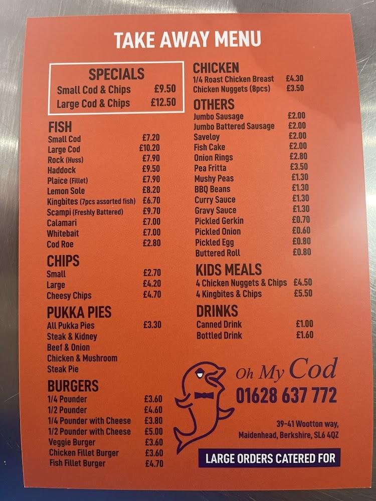 Nestled at 39 Wootton Way, Oh My Cod is conveniently situated for locals and visitors in Maidenhead. This beloved eatery specializes in serving mouthwatering fish and chips, making it a staple in the local food scene for several years. The establishment is designed with accessibility in mind, featuring a wheelchair-accessible entrance and parking, ensuring everyone can enjoy their delicious offerings.